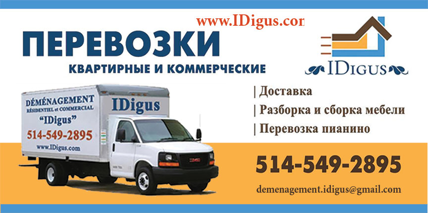 РекламаТранспорт, автомобили, самолёты, кораблиПеревозки. Квартирные и коммерческие. Idigus. by Svitlana MatviyenkoЯнв 16, 2019Янв 11, 201901 Share0 www.IDigus.com Доставка Разборка и сборка мебели Перевозка пианино С грузчиками и без. Профессионально. Страховка. [email protected] 514-549-2895 Пожалуйста, оставьте это поле пустым. Подпишитесь на ежедневную рассылку новостей о Канаде, Квебеке и Монреале. Читайте актуальные новости каждый день. Не пропустите главные события! Проверьте ваш почтовый ящик или спам, чтобы подтвердить свою подписку.