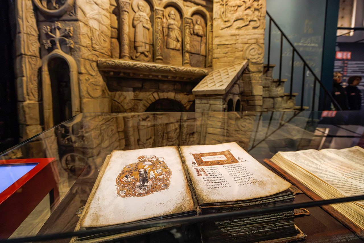 Один из красивейших экспонатов выставки о том, как после принятия христианской веры начался подъем культуры на Руси. Князь Владимир открыл много школ, где обучали грамоте и куда свозили большое количество детей. При монастырях также было открыто много школ, где грамоте детей и взрослых обучали монахи. Сами князья были высокообразованными людьми своего времени, владеющими в совершенстве 4-5 языками, а также многими другими науками.