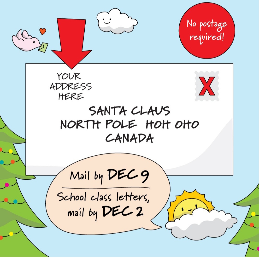 Письма следует отправить до 9 декабря, указав адрес Санты и обратный адрес, чтобы получить ответ до праздников.