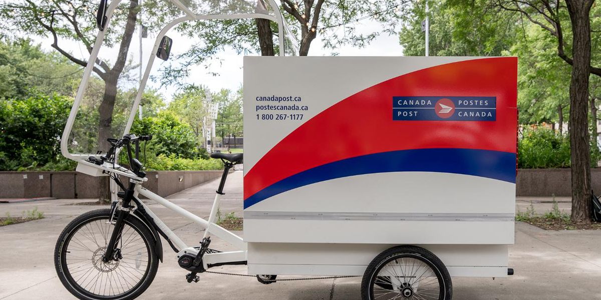 Если вы находясь в центре Монреаля, замечаете гигантский трехколесный велосипед Canada Post, доставляющий почту, вы не спите. Это новая реальность.