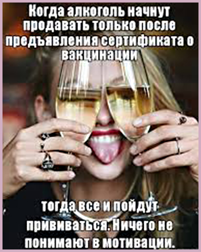 С другой стороны русский сектор интернета уже более более года пестрит мемами о том, что нужно сделать вакцинацию обязательной для покупки алкоголя.