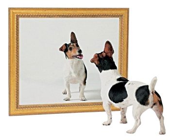 Оглядевшись, она увидела множество собак вокруг себя. Собаки были повсюду. Будучи весьма разумной собакой, она оскалилась, чтобы на всякий случай защитить себя от этих миллионов окруживших её собак и испугать их. Все собаки оскалились в ответ. Она зарычала — они с угрозой ответили ей. Теперь собака была уверена, что жизнь её в опасности, и стала лаять. Ей пришлось напрячься, она стала лаять изо всех сил, очень отчаянно. Но когда она залаяла, те миллионы собак тоже начали лаять. И, чем больше она лаяла, тем больше отвечали ей они.