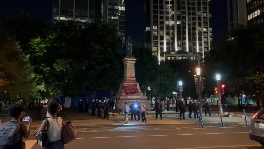 По словам представителя полиции Монреаля Жан-Пьера Брабанта, полицейские патрулировали район и остановили людей, пытавшихся снести статую, но попыток демонтировать лагерь не было.