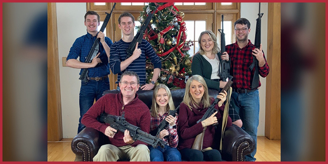 Американский конгрессмен опубликовал Рождественское фото, где он с семьёй позирует на фоне нарядной ёлки с оружием в руках.