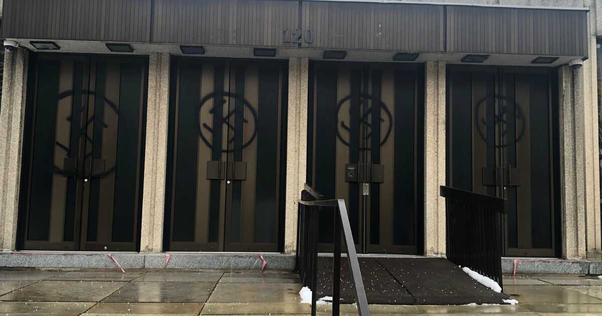 Одна из крупнейших синагог Монреаля была осквернена антиеврейскими граффити 13 января, когда на ее входных дверях из баллончика были нарисованы четыре свастики.