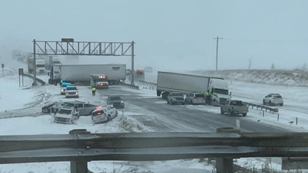 В субботу днём автобус с местной хоккейной командой Junior A оказался среди десятков автомобилей, попавших в аварии к югу от Эдмонтона на шоссе 2 из-за плохих погодных условий.