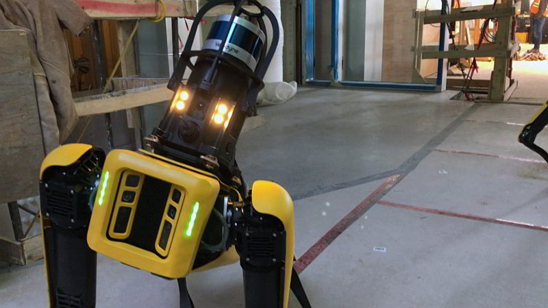 Компания Pomerleau проверяет эффективность собак-роботов на стройке. Испытания должны завершиться через 6 месяцев.