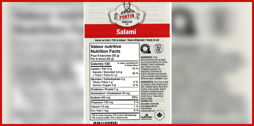Канадское агентство по надзору за продуктами питания отзывает популярную в Квебеке салями Charcuterie Fortin. Об этом ведомство заявило утром в субботу.