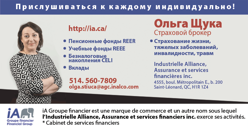 РекламаСоветник по финансовой безопасности. Olga Stiuca. by Svitlana MatviyenkoФев 11, 2017Фев 9, 201700 Share0 4555, boulevard Métropolitain Est Bureau 200 Saint-Léonard (Québec), H1R1Z4 514. 560-7809 [email protected] http://ia.ca/ Пожалуйста, оставьте это поле пустым. Подпишитесь на ежедневную рассылку новостей о Канаде, Квебеке и Монреале. Читайте актуальные новости каждый день. Не пропустите главные события! Проверьте ваш почтовый ящик или спам, чтобы подтвердить свою подписку.