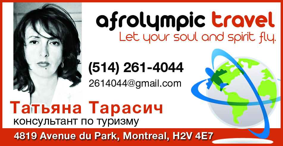 Путешествия, туризмРекламаСпециальное предложение на покупку авиабилетов на все направления! by Svitlana MatviyenkoФев 16, 2017Фев 16, 201700 Share0 Татьяна Тарасич — консультант по туризму-предоставит Вам лучшие цены. Звоните по тел. (514) 261-4044 [email protected] afrolympic travel Let your soul and spirit fly. 4819 Avenue du Park, Montreal, H2V 4E7 Пожалуйста, оставьте это поле пустым. Подпишитесь на ежедневную рассылку новостей о Канаде, Квебеке и Монреале. Читайте актуальные новости каждый день. Не пропустите главные события! Проверьте ваш почтовый ящик или спам, чтобы подтвердить свою подписку.