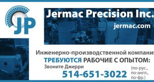 Инженерно-производственной компании Jermac Precision Inc. требуются рабочие с опытом: чтения чертежей работы на ручных токарных или фрезерных станках навыки сварщика — преимущество оплата труда от 20$ до 26$ в час, минимум 40-часовая рабочая неделя после 3-х месячного срока предлагается страховка по здоровью Звоните Джерри 514-651-3022 (по-рус., по-англ., по-фр.) 3655 Rue Isabelle, …