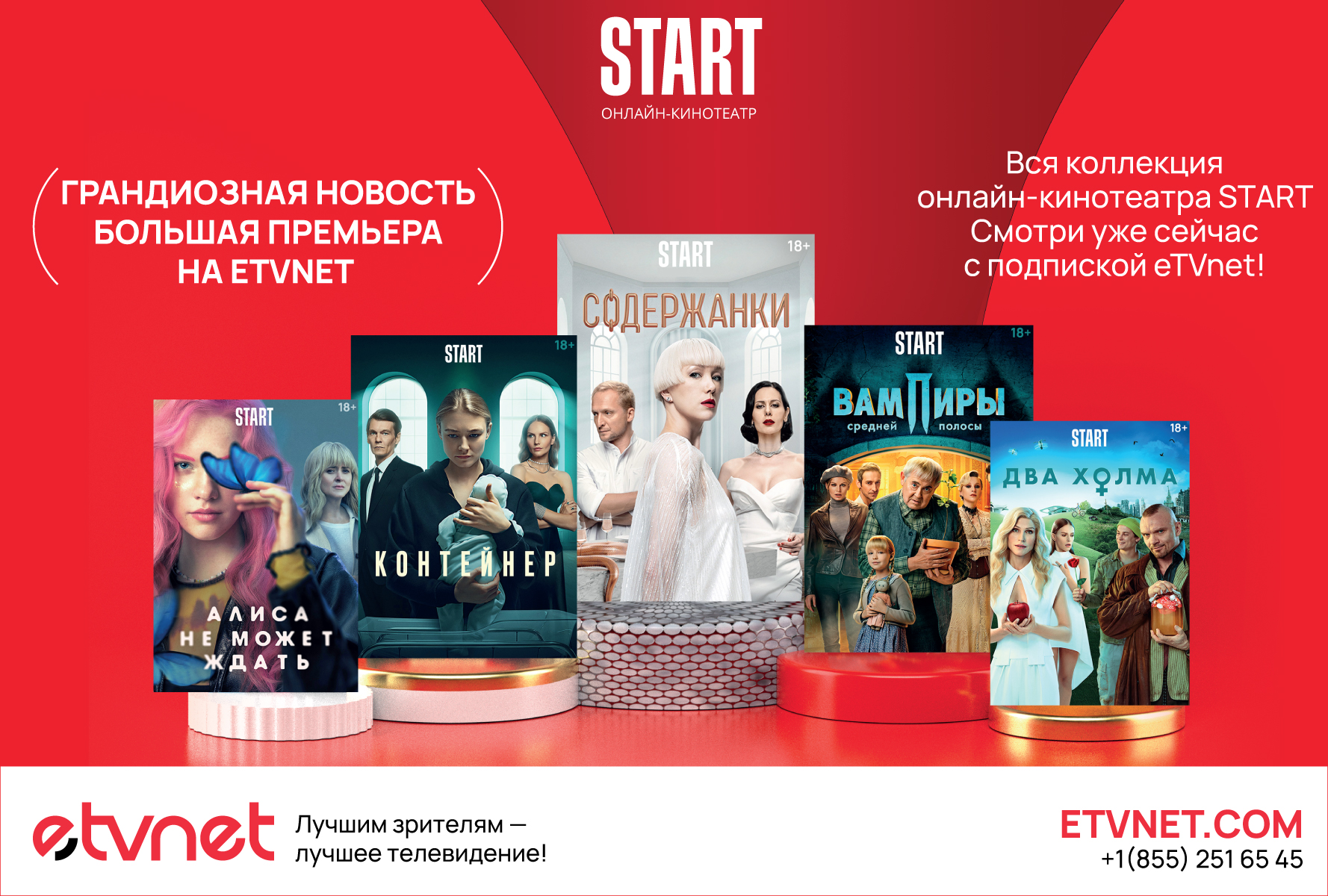 С подпиской eTVnet вы можете смотреть богатейшую коллекцию фильмов и сериалов START. Помимо этих замечательных премьер, на eTVnet вы найдете множество других прекрасных фильмов и сериалов в любом жанре!