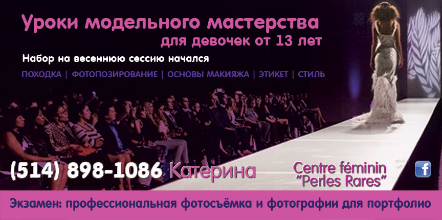 ОбразованиеРекламаУроки модельного мастерства для девочек от 13 лет. Катерина. by Svitlana MatviyenkoМар 25, 2019Мар 21, 201900 Share0 Набор на весеннюю сессию начался! Походка Фотопозирование Основы макияжа Этикет Стиль Kateryna (514) 898-1086 Centre féminin “Perles Rares“ Пожалуйста, оставьте это поле пустым. Подпишитесь на ежедневную рассылку новостей о Канаде, Квебеке и Монреале. Читайте актуальные новости каждый день. Не пропустите главные события! Проверьте ваш почтовый ящик или спам, чтобы подтвердить свою подписку.