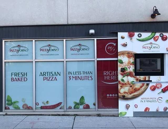 Компания «PizzaForno» открывает в Торонто свой первый круглосуточный автомат по продаже пиццы. Покупателям предлагается на выбор четыре вида настоящей итальянской пиццы: Chèvre-miel, BBQ Chicken, Pepperoni и Mozzarella, которая после оплаты заказа готовится в течение трех минут.