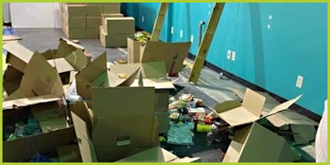 Сотни банок с продуктами длительного хранения, детскими и фармацевтическими товарами были украдены со склада, где хранились перед раздачей уязвимым жителям города.