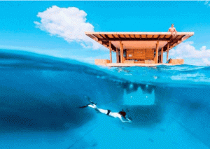 Это была бы обычная курортная гостиница на берегу моря, если бы не один номер — плавучий домик с подводной комнатой. Underwater Room находится в 250 м от берега. На палубе экзотичной конструкции можно загорать с коктейлем в руке днем или смотреть на звезды ночью, тоже с коктейлем (все включено). Огромные окна подводной спальни обеспечивают круговой обзор: можно наблюдать за жизнью рифовых рыб, кальмаров и осьминогов, осознавая, что поплавать с ними можно в любой момент. Этот отель — проект шведской компании Genberg Underwater Hotels, занимающейся созданием апартаментов под водой по всему миру. |