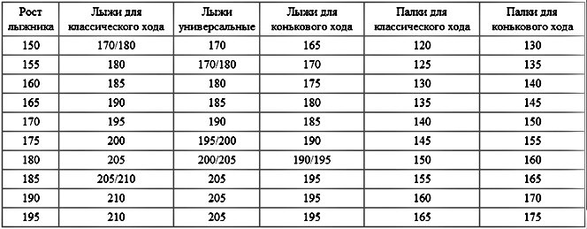 Не ошибитесь в размерах длины лыж в соответствии с вашим ростом