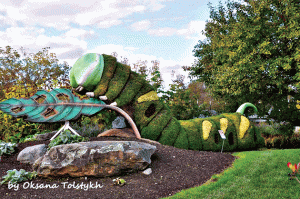 В этом году цветочные композиции были доступны для посещения до 10 октября. День для визита я выбрала прямо под конец сезона, а потому многие скульптуры в день моего приезда уже “отцвели”, и увидеть я смогла только каркасы из металла.