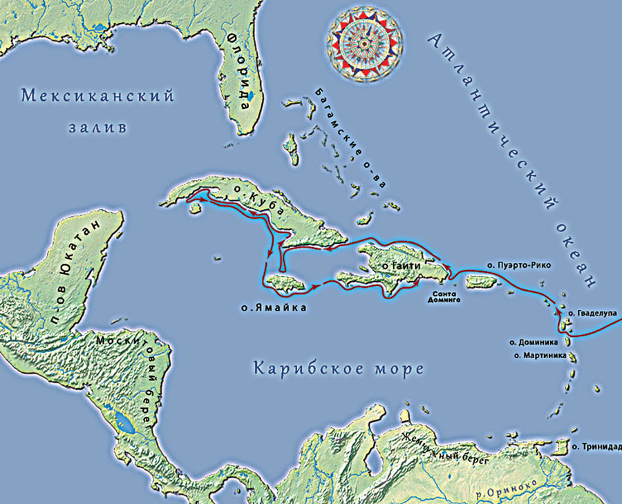 Основных племён на Карибских островах в момент их открытия Колумбом было всего два: мирные — араваки и воинствующие — карибы.