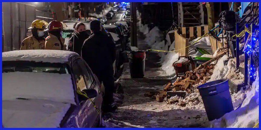 Около полуночи Департамент пожарной охраны Монреаля (SIM) получил вызов по поводу обвалившейся стены на 3-м этаже здания на пересечении улиц Картье и Шербрук.