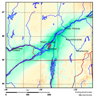 По данным Earthquakes Canada, землетрясение произошло в 03:22 и «слегка ощущалось в Монреале».