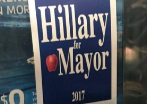 На прошлой неделе по городу стали появляться плакаты «Хиллари – в мэры 2017». Конечно, сложно сказать, причастна ли она сама или ее политическое окружение к этой кампании. Либо же это могут быть действия ее сторонников из народных масс, которые таким образом надеются подтолкнуть ее ко вступлению в мэрскую гонку.