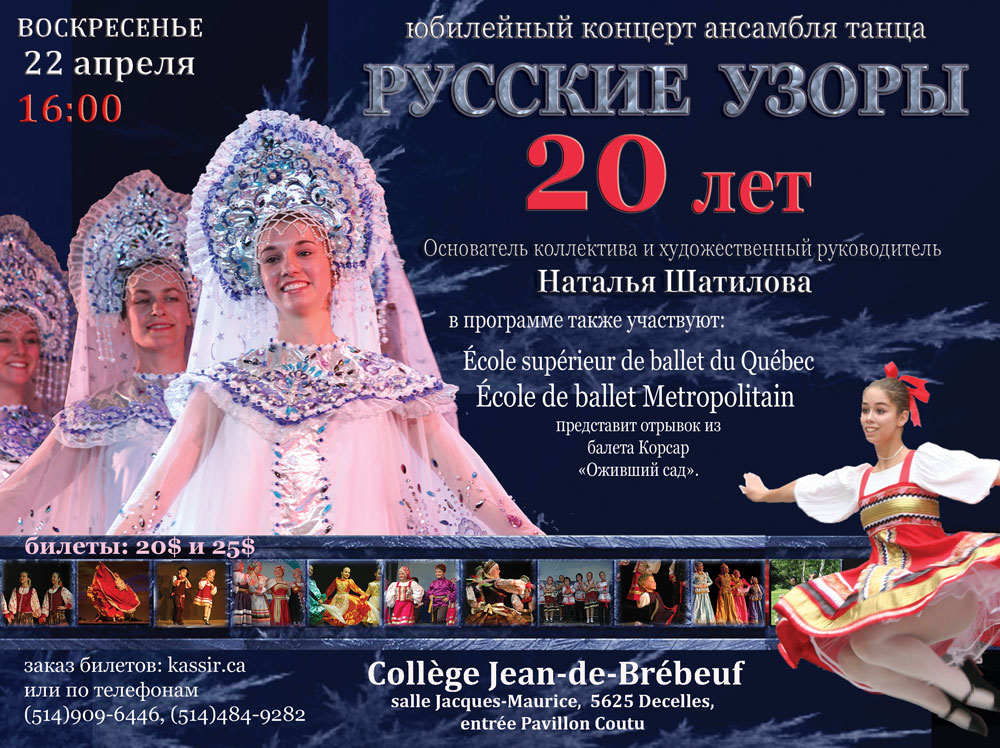 Заказ билетов: kassir.ca или по телефонам (514)909-6446, (514)484-9282