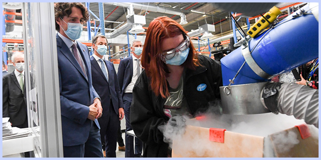 Канадский премьер-министр выбрался на свободу из созданной его же коллегами клетки, и на радостях сгонял из Великобритании в Бельгию и посетил завод по производству вакцины от COVID-19, где готовят прививки Pfizer-BioNTech.