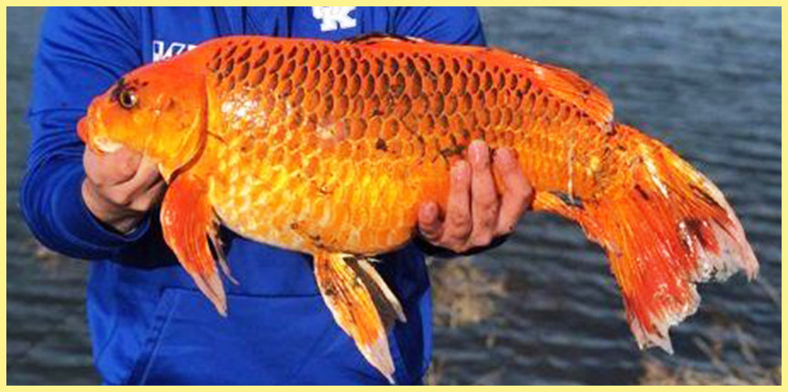 Золотые рыбки (Carassius auratus, или карась китайский), обитающие в Северной Америке, способны поедать практически все виды пищи и достигать в длину до 16 дюймов (40,6 см), что делает их слишком крупной добычей для хищников, говорит исследователь водных ресурсов из отдела рыболовства и океанов в Канаде Кристин Бостон, цитируя The New York Times.